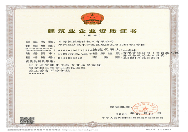 建筑企業(yè)鋼結構電子智能化資質(zhì)證書