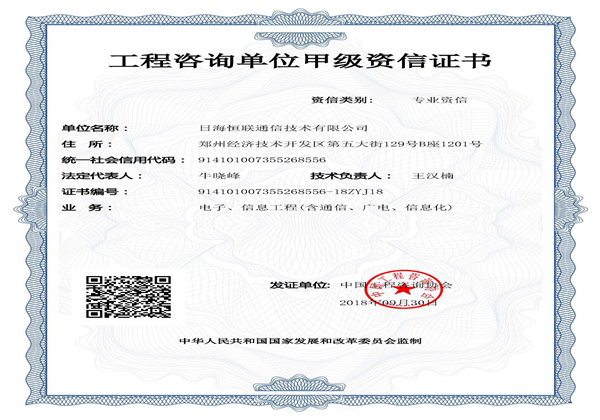 通信工程咨詢單位證書甲級